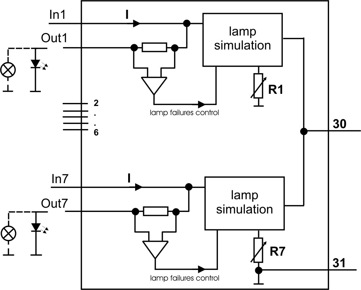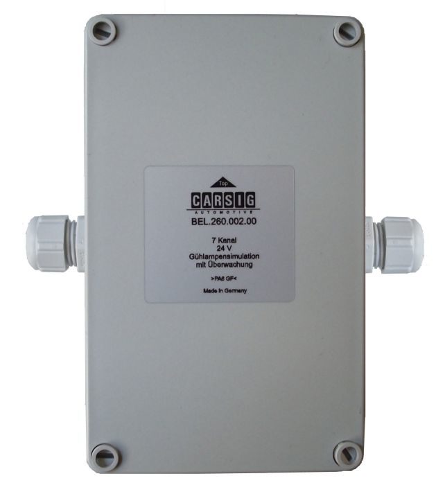 The lighting module is used to simulate electronic loads such as light bulbs. Output monitoring can be used to signal the failure of an LED or other load to the chassis. Thanks to the patented process, the assembly is characterized by low heat generation.