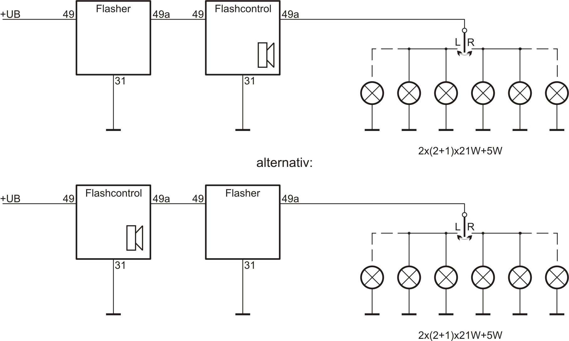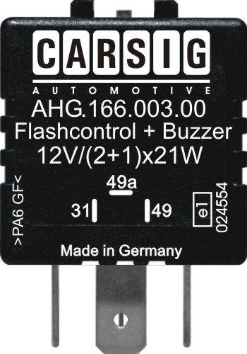 Flash control 12V with C2 buzzer for trailer operation, built-in buzzer instead of C2 lamp, EU socket connection.