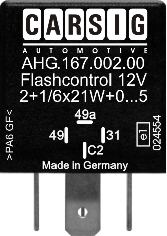 Das Flashcontrol überwacht die Fahrzeug Blinklampen sowie die des Anhängers. Wird eine dritte Blinklampe 21W erkannt, so wird das durch den Ausgang C2 signalisiert.