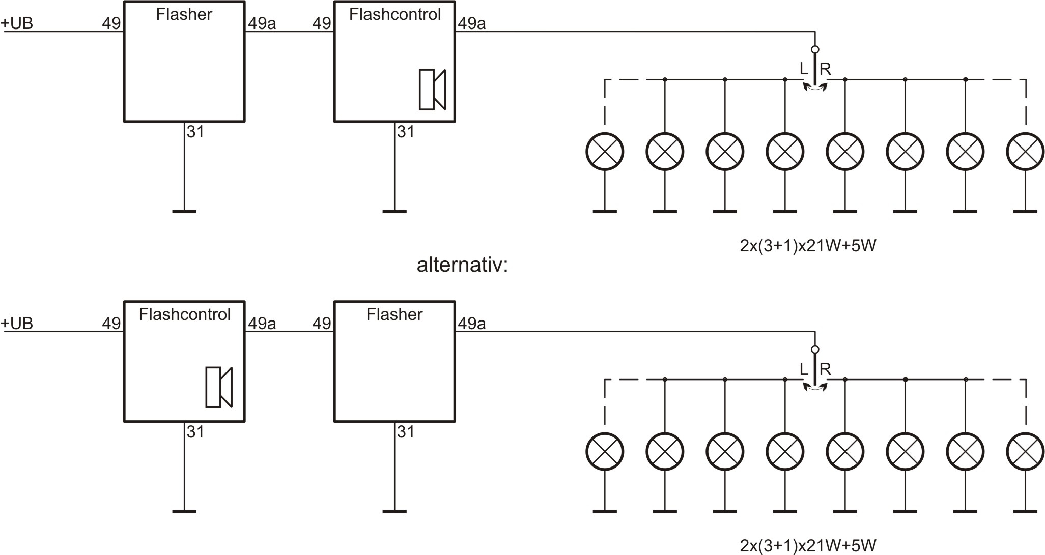 Flash control with C2 buzzer for trailer operation, integrated buzzer instead of C2 lamp, Japan socket connection.