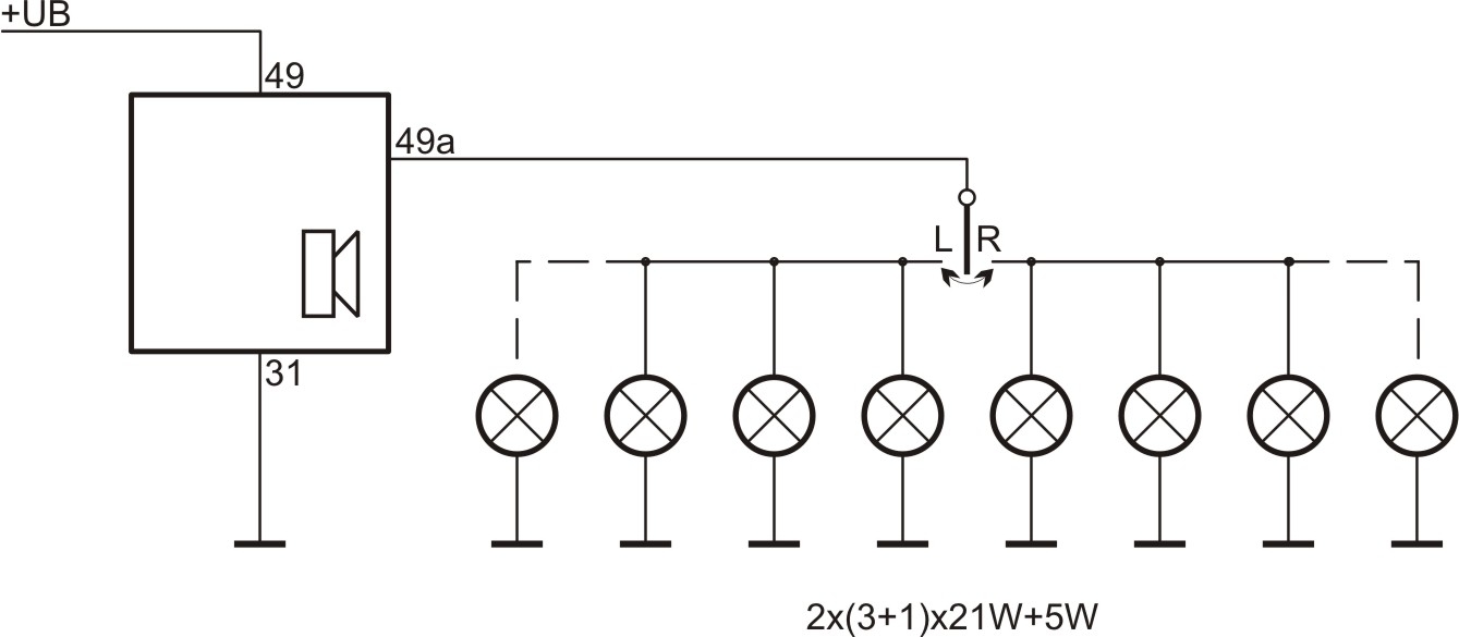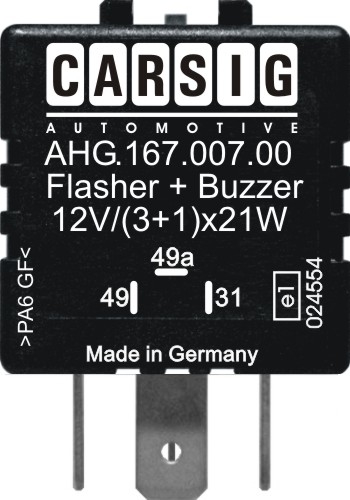 Der Blinkgeber überwacht die Fahrzeug Blinklampen sowie die des Anhängers. Wird eine vierte Blinklampe 21W erkannt, so wird das durch den Buzzer signalisiert. Bei Unterschreitung von drei Blinklampen wird eine höhere Blinkfrequenz erzeugt.