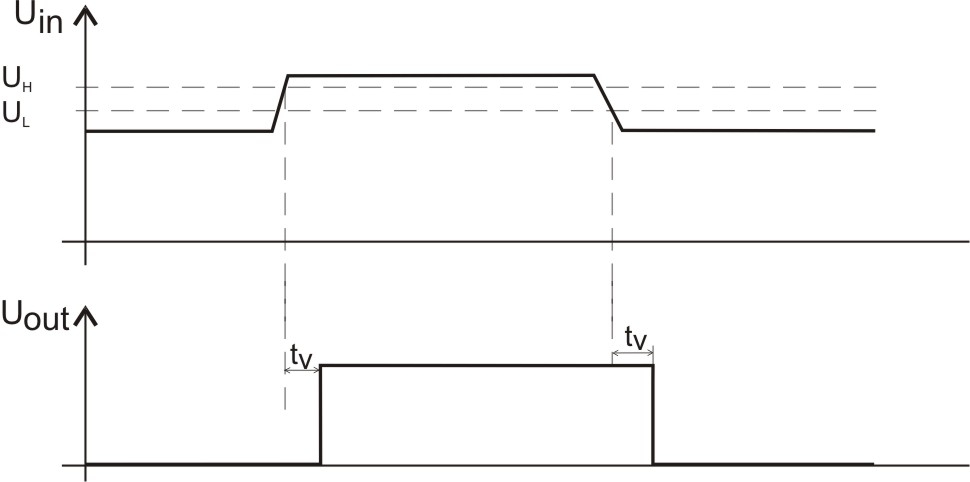 Voltage monitor 12V If the input voltage exceeds 13.2V, the relay switches on after 60s, if it falls below 12.8V, the relay switches off after approx. 1s.