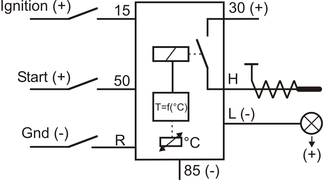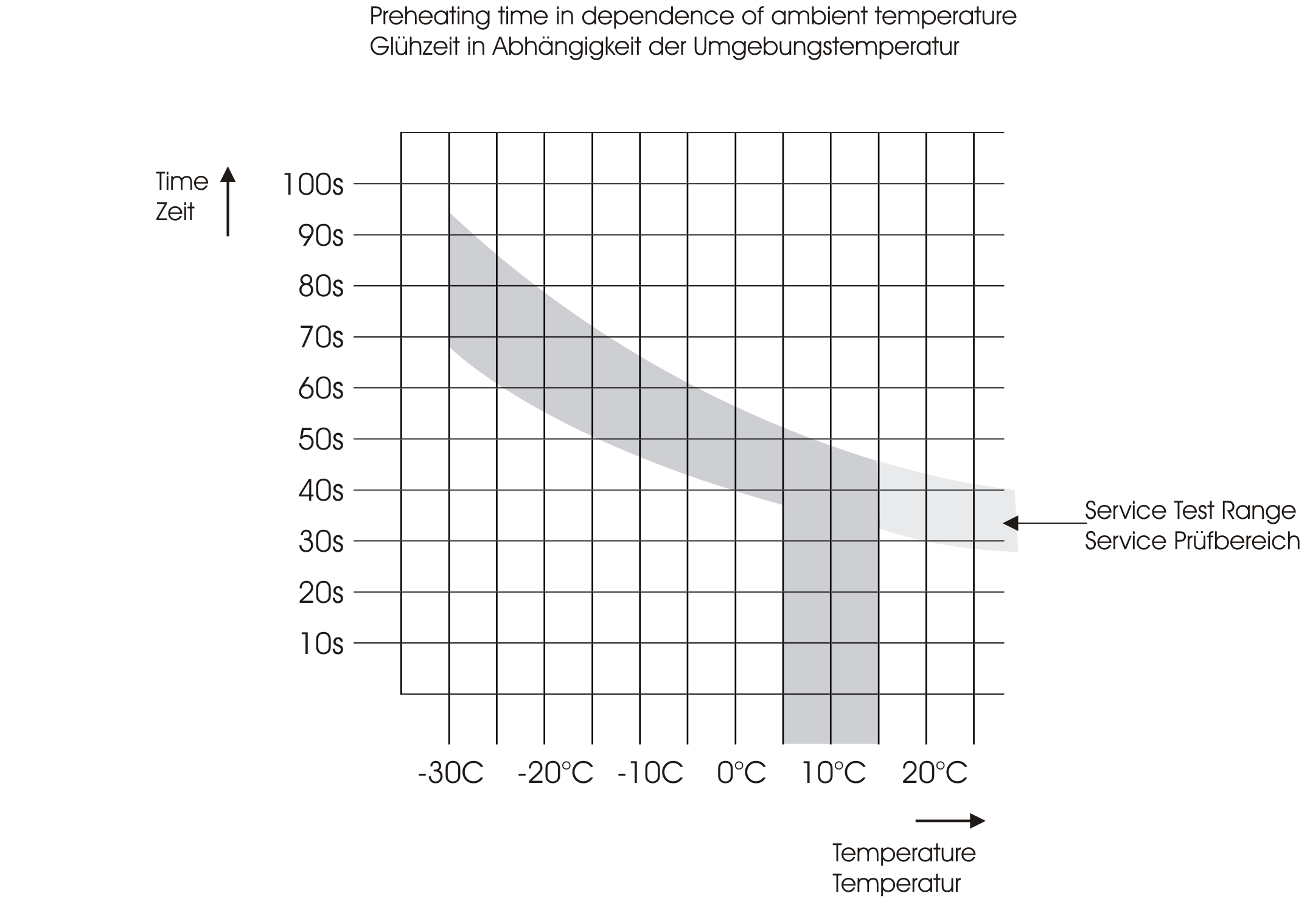 Nach Ablauf der temperaturabhängigen Glühkontrollanzeige erlöscht diese, die Startfreigabe wird damit signalisiert. Nach erfolgtem Start (Motor läuft) bleibt das Relais für weitere 20s (+/- 3) geschlossen (Nachglühzeit).