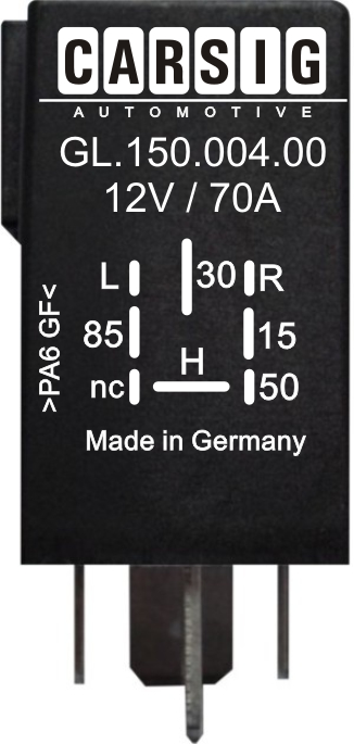 Dient zum Vorglühen bei Dieselmotoren (Vorglühzeit). Das Glühzeitrelais (Steuergerät, Glühzeit) hat die Funktion, den Strom für die Glühkerzen zeitgesteuert und temperaturabhängig ein- und aus zu schalten.