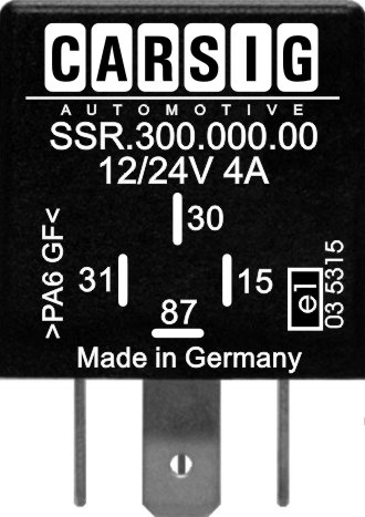 Solid-State-Relais 9-30V / 4A mit einem Halbleiterausgang, pos. angesteuert, überlastsicher und kurzschlussgeschützt. Keine Schaltgeräusche und vibrationsunempfindlich.