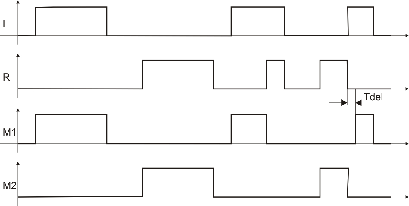 Bei der Beschaltung (Dauerbetrieb) des Eingangs L oder R, wird der entsprechende Motorausgang geschaltet und der Motor läuft so lange in die entsprechende Richtung.