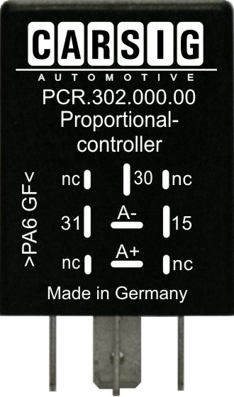 Der Proportional-Regler dient zur Durchflussmengen- regelung von Ventilen und kommt bei hydraulischen Anwendungen zum Einsatz, aber auch zur Lüftersteuerung, Drehzahl, Sanftanlauf. Möglichkeit der kundeneigenen Programmierung mittels grafischer Programmieroberfläche CarsGraf©.