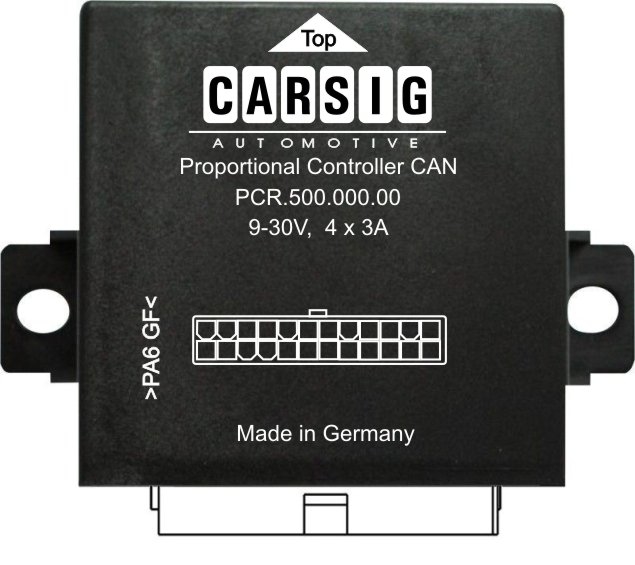 grafischer Programmieroberfläche CarsGraf©. Die Funktionen sind frei programmierbar. CAN-Bus high- oder low-speed (andere Schnittstellen wie CANopen, SAE J1939, RS232 optional).