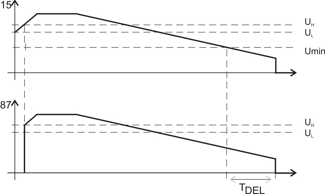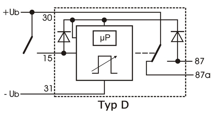 Der Spannungswächter schaltet Verbraucher bei über- oder unterschreiten einer definierten Schwellspannung zu oder ab. Die Besonderheit liegt darin, dass solange der Eingang 15 anliegt, ist die Spannungswächterfunktion deaktiviert. Wird der Eingagn 15 abgeschaltet belibt das Relais so lang angezogen bis die Unterspannungsschwelle erreicht ist.