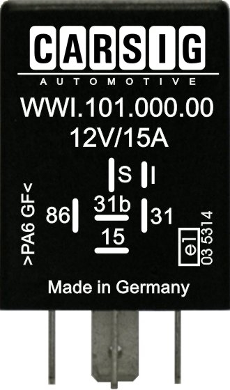 Wisch-Wasch-Intervall-Relais 12V 15A, Intervallpause einstellbar 4sec. - 20sec., Nachwischzeit ca. 5sec.