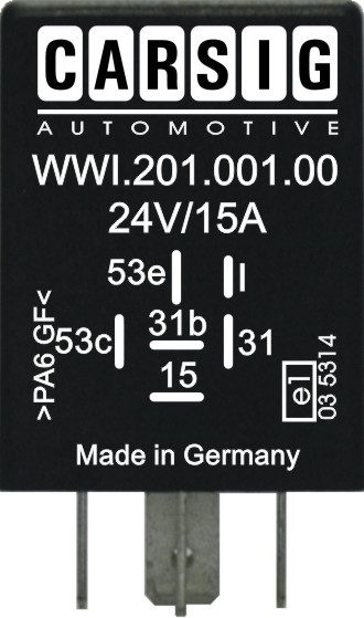 Wisch-Wasch-Intervall-Relais 24V 15A, Intervallpause einstellbar 4sec. - 20sec., Nachwischzeit ca. 5sec.