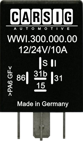 Wisch-Wasch-Intervall-Relais 12V 10A, Intervallpause einstellbar 3sec. - 20sec., Nachwischzeit ca. 5sec.